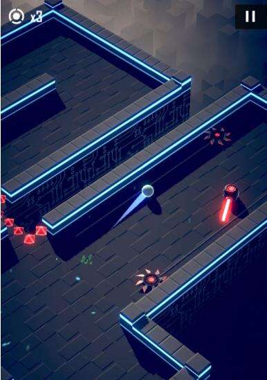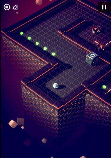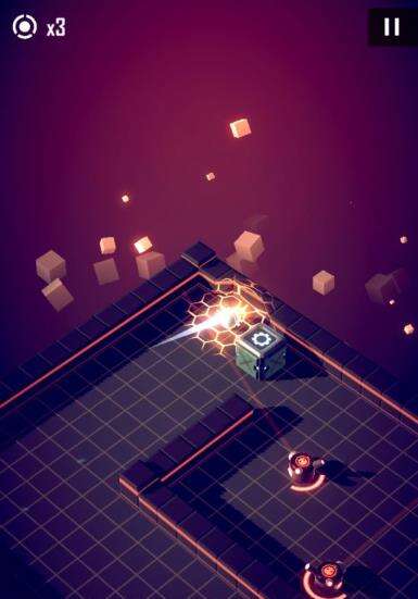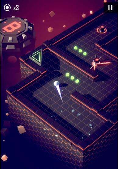 如图,中间看起来就是豆腐渣工程的东西是可破坏的墙壁,在核心碰撞一次后破碎,非加速状态会造成反弹,加速状态将直接穿越。墙后的是第一种会攻击的怪物,在周围读条圈满之后,瞄准当前球所在的位置发射一枚子弹,此为单发版本。后面还会有3连发,3发散弹,无读条加特林,多向炮台等诸多版本。读条速度也各有差异,请注意观察再行动。