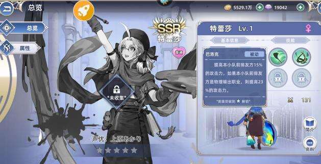 1.特蕾莎是一位能强化前排所有友方攻击力,并使用援护技能进行输出的攻辅。