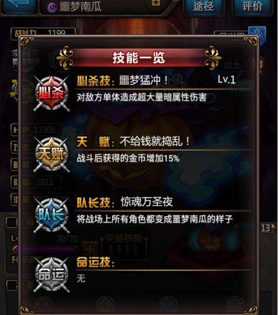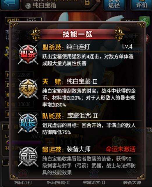 队长技能上面有,这个是初始的 要进化才有用,你有能力可以换【灰心】,【黑箱子】获取难度超高