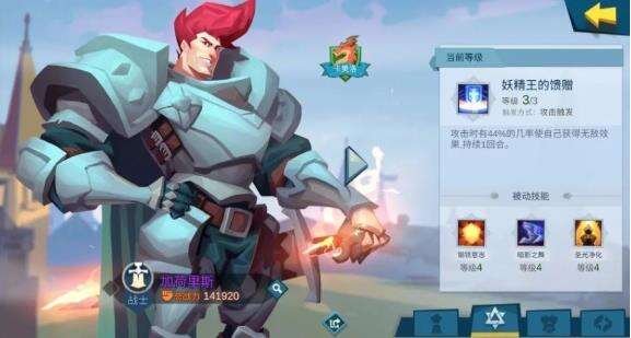 三个被动技能让加荷里斯占位前排,带来不错的护身被动。主动技能是他的核心。细心的玩家会想,满级才44%的几率,会不会是个鸡肋?夊月告诉你,不会!因为他的触发方式是攻击,就是每砍一刀都有44%几率获得无敌效果,不像其他英雄需要满怒气。