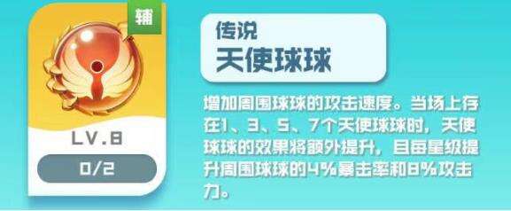 正面刚输出,除了需要强力核心输出球,还需要给输出加BUFF的辅助球,天使无疑成为首选。这套阵容中,天使或暴击搭配元气,能产生超高的范围伤害。由于元气后期乏力,它们俩还能延长元气的强势期,可谓是绝配。奔流加速对面怪物,让对手没有招架之力。接下来,我们看看天使球的技能: