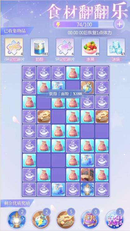 在【食材翻翻乐】中,老大通过消耗体力点击任意格子就可以获得该格子对应的食材,体力会随时间恢复,也可以消耗钻石购买。