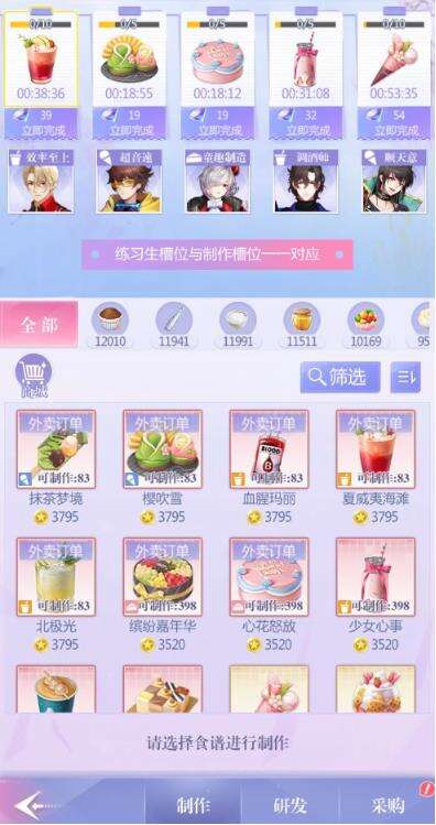 得到菜谱之后老大就可以安排练习生使用现有的食材【制作】食物。如果想要提高食物制作的效率,老大可以安排拥有特定技能的练习生制作该种类的食物。