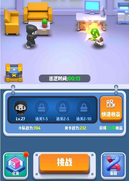 特工点开挑战玩法后,将会遇到潜入ZIB仓储区域的脏丝。将所有脏丝击杀后,不仅可以获得挑战更难关卡的资格,还可以获得局里失窃的特工仓库情报,解锁仓库系统。