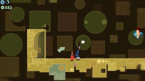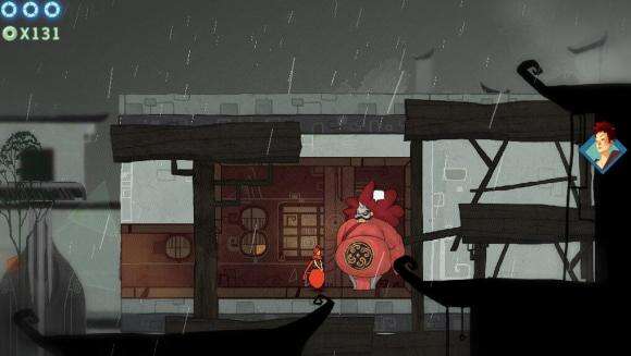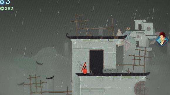 鹞一直向右进入墙壁,变为玄上去把石头推下去,卡在路中间的按钮上,然后回到图中的二层,跳上横梯在跳上升降。一直往左上方,【互动】解开绳索,烧着的箱子把地面烧开。把卡在按钮的石头推下去,一直往右,到最右端用头把通道的门怼开。
