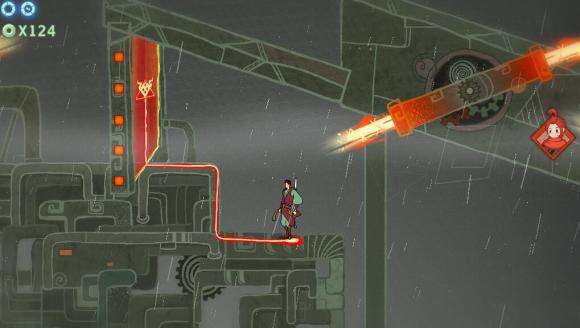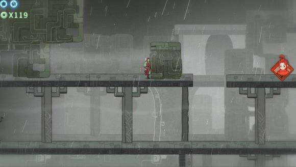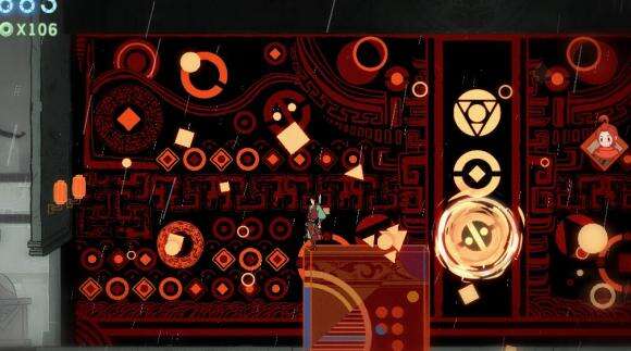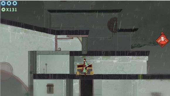 获得凤凰火,站在隐藏柱子上拉下上边的栏杆,轮子掉下。