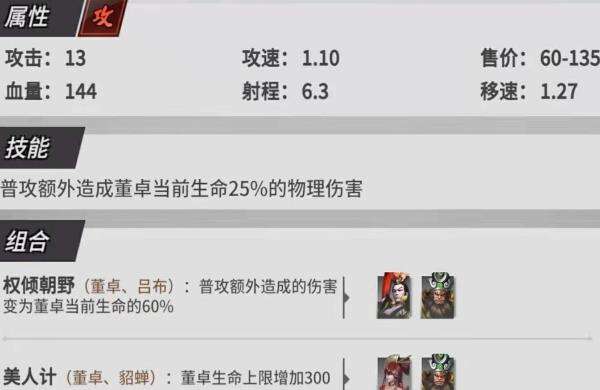三级满羁绊的董卓 满血时 伤害可以高到 每下 732 * 0.6 + 13 * 3 = 478