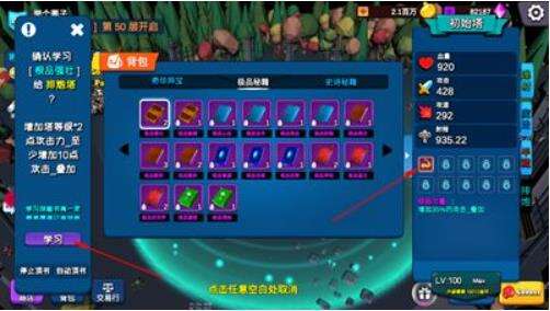 6.秘籍:说到秘籍,我们的塔在升到100级后卡在39层挂了,发现打不动了。怎么办?我们要给塔打秘籍了。