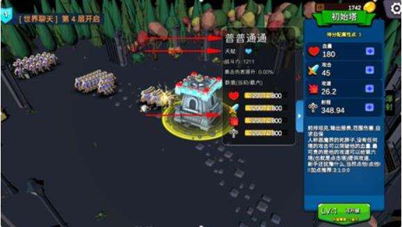 游戏认识:这是一个塔防游戏,通过不断洗塔的属性和技能搭配来提高战斗力去打败一层又一层的敌人。挑战敌人失败会让塔的等级变成0.