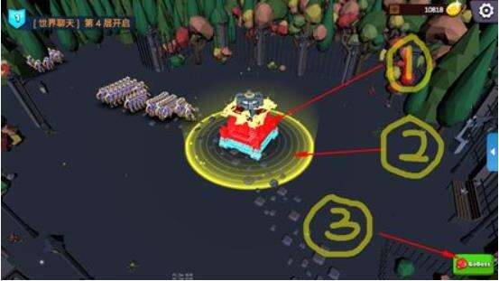 箭头1是塔的血量,2是塔的射程,3就是去挑战BOSS。