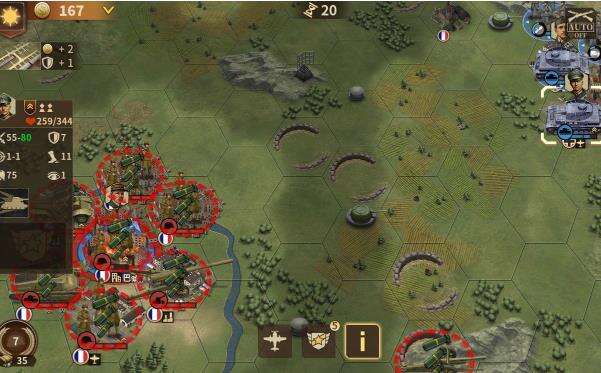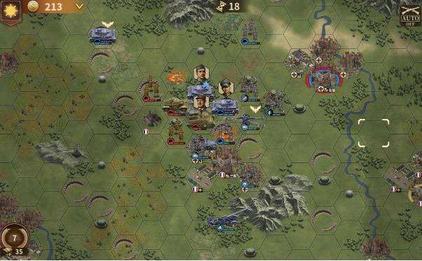 梅塞上坦克,博克上轻炮,三个步兵一个金牛座、一个猎鹰团、一个运输车。派一个装甲车往上跑去占友军城攒经济,其他部队从下方走攻占色当。 首回合可以SL古帅连击