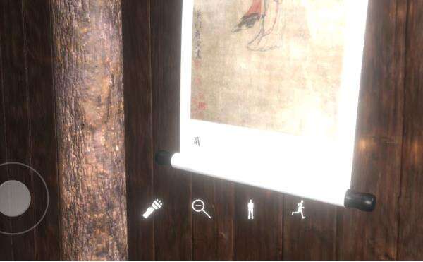 打开手电,照射两边墙上的古画。