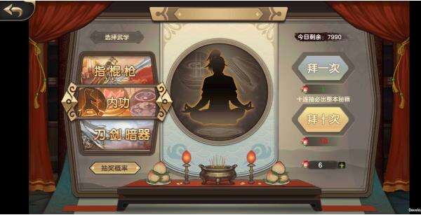 我的建议是先10连抽十连内功,然后是30连十连外功。只有积累一定次数的连抽,非酋才有可能过得橙色武学。