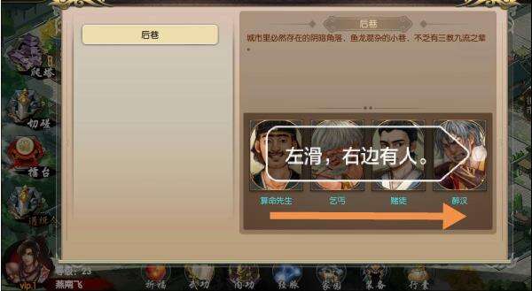 点击,他会告诉你小巷里面有一个鬼鬼祟祟的刀疤脸手上有把钥匙,