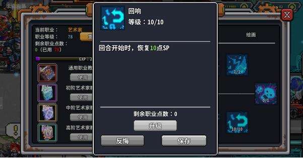 回响:回合开始时恢复10点SP,也就是一个格的能量,刚好创世纪的全体攻击消耗一点能量,只要你速度够快,就可以率先攻击敌方造成流血伤害。