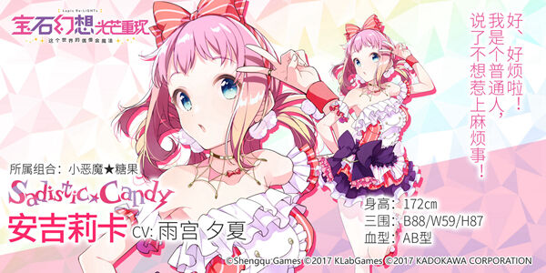 魔女(偶像)养成RPG手游《宝石幻想:光芒重现》现已开启预约,上次我们向大家介绍了シュガーポケッツ(口袋甜心),这一次让我们继续走进《宝石幻想:光芒重现》的学院百科,认识一下Sadistic★Candy(小恶魔★糖果)。
