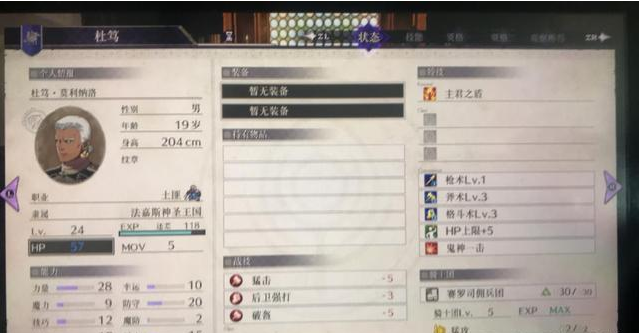 HP:55 力量:60 魔力:20 技巧:50 速度:50 幸运:25 防守:40