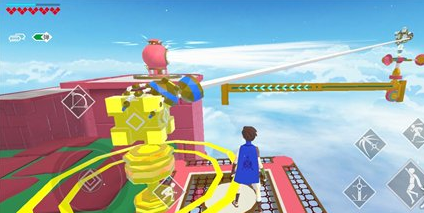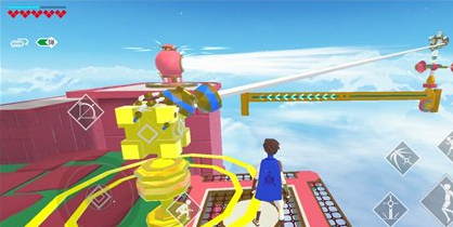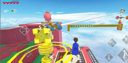 首先在风车那里,要先去绿色台子,然后跳到对面的黄色机关那里,拿剑砍它就可以过了。如果是卡在风车的前面一个场景,需要使用爆剑让大白把我们抓过去。