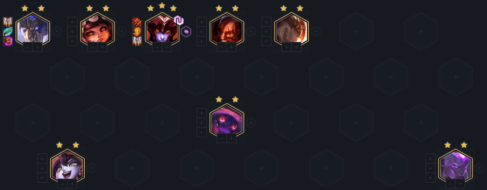 到七人口之后我们可以补上龙王,此时我们可以卡着利息第一波牌,找到龙女的龙魂天选,用璐璐换下布隆,此时可以组成三龙魂加五魔法师,然后把我们的卡牌除了龙王都可以追到两星就可以拉八人口,八人口我们找到斯维因直接丢上去阵容成型,这时我们就可以大搜找三星龙女了,政府站位璐璐、火男和小法站后排,其余顶前排就可以了。