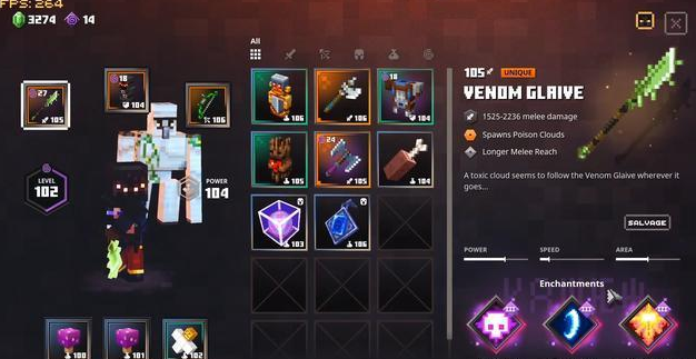 传统职业特性可能会限制玩家武器、装备的持有种类,《我的世界:地下城》对此进行解耦,通过选择不同的武器,玩家将呈现多样的攻击方式,变相的扮演了不同角色,剑士、术士、弓箭手等。除此之外,同类型武器也会因品质等级等各种因素提供不同的附魔方向。比如多重射击、连锁反应、落雷,多武器加繁杂的附魔特性,玩家能够更加自由地发挥脑海中幻想的战斗风格,或许不强但很欢乐。