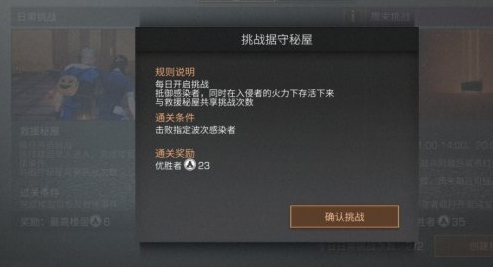 玩家们在据守密屋里属于防御者,需要在仅有的地方去防御僵尸们的入侵攻击,总共需要防守七波才算通关,我们在进入到据守密屋里面的时候有一定的概率能够刷新出高等级的密屋,2级密屋需要我们防御十波才可以。