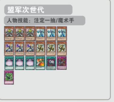 在游戏王这款游戏里有许多的卡组都能够让玩家们进行构筑,今天小编向大家介绍的盟军次世代卡组非常的具有人气,为了能够让玩家门能够更清晰的对该卡组拥有一定的理解,接下来让我们来近距离观看一番吧。