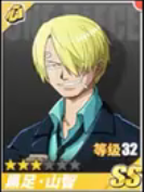 黑足山治:双S级别的山治在pvp里面的表现非常强悍,该角色最近应该会面临削弱,特色在于黑足山治可以在很远的地方打中你,你无法攻击到他,同时山治的攻击速度以及冷却时间都很快,是目前pvp里面的t0级别角色,如果你拥有的话就抓紧时间上分吧。