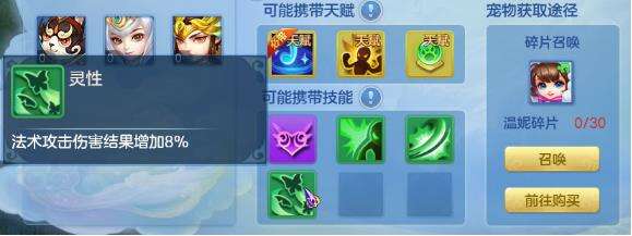点击资质数值,可以看到它影响的属性。带有”荐“字的一项代表它的突出资质。这说名温妮是一直法术宠物,推荐朝法术宠物方向培养。