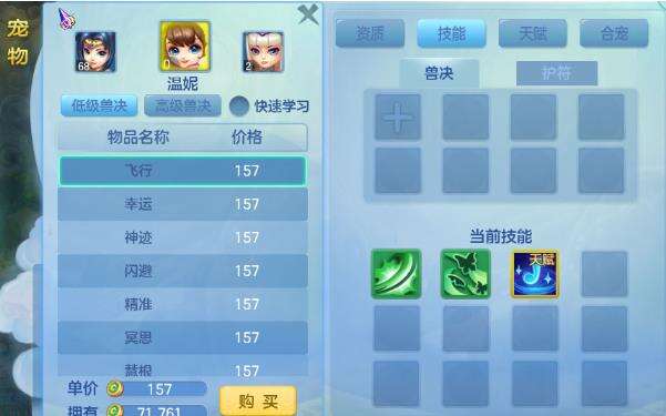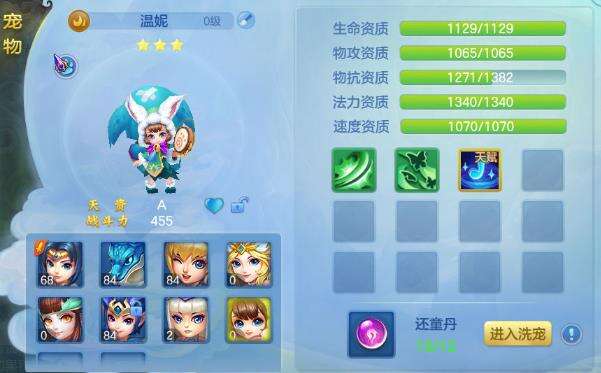 如果洗出了一只资质很好的宠物,但是他技能比较少或者不是十分强力,遇到这种情况,点击【培养】可以在宠物界面为宠物打技能。