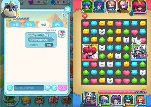 近期即将上线的公会友谊战,是另一种策略玩法。玩家不仅可以在公会内发起红心对决,在秘境中化身首领BOSS,与组内大神切磋,还能实时观战,学习战斗消除的精髓。尤其注意友谊战决是一人一步实时对决,很可能对方看似不小心在角落生成炸弹或者火箭,但实际上却没有打到对方。可是转眼下一步,对方就利用上一步消除后的棋盘,结合多种英雄技能,对我方造成大量连击伤害,局面比宫斗剧更精彩!