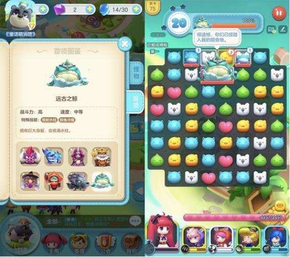 在《童话萌消团》中流传着一本宝典,记录着Q萌捣蛋团的背景故事和怪物特点,传闻只要掌握了这本宝典,就可以轻松掌握Q萌捣蛋团的弱点。以生活在海中的怪物首领远古之鲸为例,由于它的战斗力较高,甚至还有特色技能鲸鱼冲撞,可以瞬间造成大量伤害,所以需要上阵一名恢复型童话英雄,例如灰姑娘。怪物宝典不仅能随时查看怪物的特点,在战斗界面还能留言吐槽,甚至留下宝贵的战斗攻略。