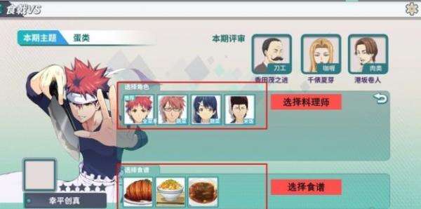 参加食戟的首要条件是选择参战的料理师,选择食谱显示的是当前角色已经学会的食谱。