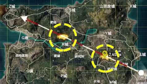 玩家在飞机上时,可以在飞机的行驶路线上看到两个飞艇图标,这就是本局游戏第一阶段飞艇的所在位置。