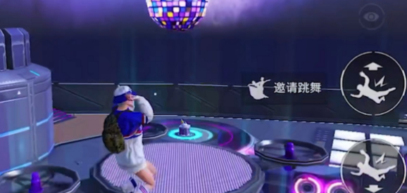 在飞艇上,玩家可以看到一个超大的舞台,在走入舞台范围时,玩家会随着音乐起舞,还可以在空中自由舞蹈。玩家走到舞台中心后,会出现一个邀请跳舞的图标,点击图标后,玩家就可以和队友一起跳舞。