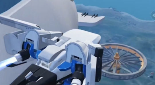 在飞艇边上还有小型的僚机,玩家可以乘坐僚机环绕飞艇,观赏景色。
