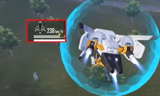 飞行器与滑翔机不同之处在于,它的耗油量较少,但是行驶速度非常快,在驾驶飞行器的按钮中,除了上升和下降按钮,还有一个爆发的按钮,按下之后,飞行器会改变形态,它的速度可以达到238公里每小时,并且在爆发状态,飞行器周围会出现一层护盾,可以免疫所有伤害!