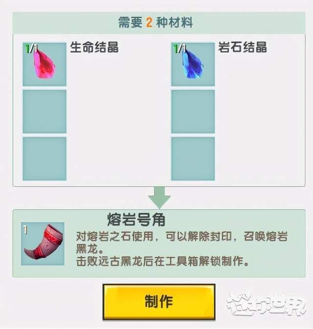 最后,将生命结晶和岩石结晶合二为一,就成功制作出来地心之神所说的熔岩号角了,但在使用之前一定要做好准备,解除封印所要战胜的怪物,就是迷你世界中最强的boss——熔岩黑龙,也不知道地心之神是故意没说怕玩家害怕还是忘记说了,却是只字未提熔岩黑龙的事情。