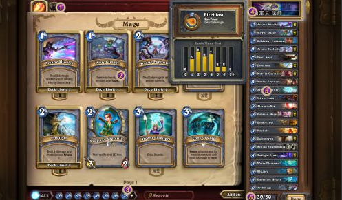 4.卡组所属英雄。鼠标悬在上边可以查看这套卡组的法力曲线。