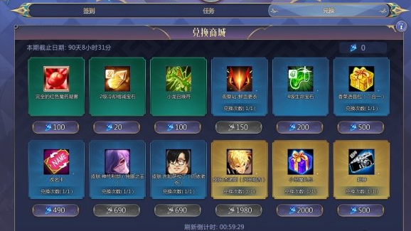 【日常任务】:调整并新增了一批任务,每日刷新,完成任务后,获得 蒂塔の印章,集齐更多印章激活右侧奖励,收集更多的莫比乌斯币,可以在兑换商店,兑换英雄皮肤、高级宝石、神器礼包等等。