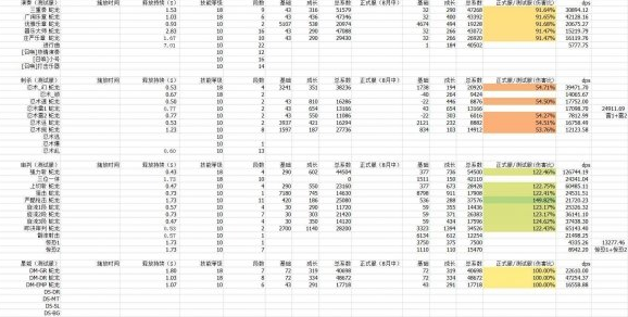 下图为全副职业各技能段数系数秒伤。