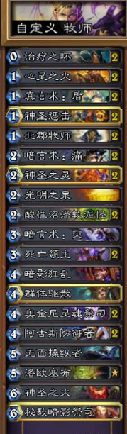 第三个boss是看起来血量最少最好打的。他的核心思路是如何解除三个骑士。他没有其他的随从,只有这三个骑士,因此,牧师的痛对付2-7的骑士是很好的选择。我还带了治疗环跟剑圣的配合,运气好能在三费的时候站住一个4-7。没有摸到也没关系,我在这里加入了新卡牌中的死亡领主,因为对面只有三个骑士,没有其他随从,因此死亡骑士的负作用是不会召唤出怪物的,是个对抗boss的很好的怪物。再来就是无面复制,他能够让你也变成免疫。再来就是新的橙卡,让对手的法术在下回合增加5费,原因同上。最后还有拐卖,她能带一个没有被buff的骑士过来,简直是翻盘的利器。