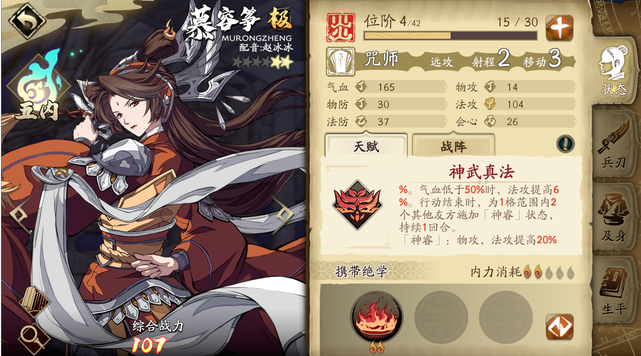 郸阴是目前唯一拥有召唤技能的角色,虽然他的召唤物本身不是太强,但是在游戏中还是非常重要的,不管是占格子还是空回合都是非常有用的,而且这个召唤物还可以开护卫,可以获得一次挡刀的机会。