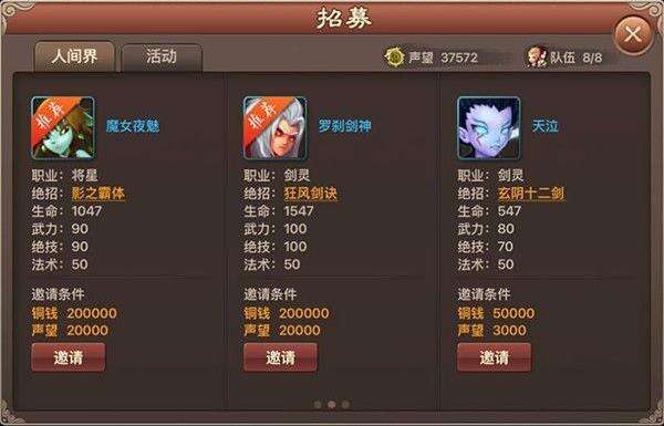 玩家可以通过客栈招募及各种活动获得自己喜爱的强力伙伴。当然游戏在之后也会更新更多的伙伴,让玩家可以体验到更多伙伴的风采。