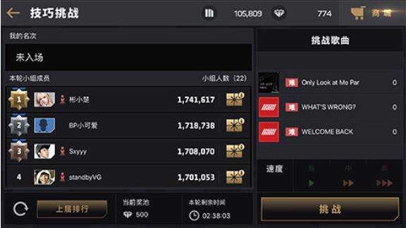 2、技巧挑战每2天刷新3首歌曲,你每挑战完一首歌曲都获得相应的打歌积分,3首歌曲的总分将是你当天的技巧挑战排行分数,当然你可以重复挑战(每次挑战有5次挑战机会,用完后需要再次购买入场券)。