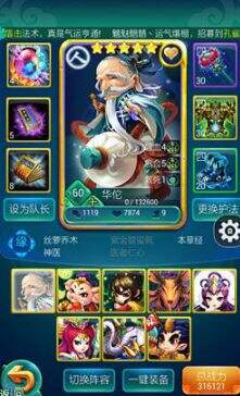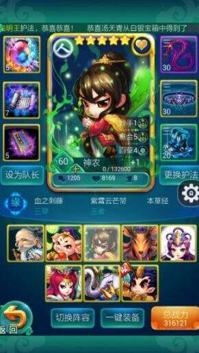 三号位站的是神农,在这里神农蓄力最快,也相对安全,对位如来没有爆发,不足以秒掉神农,红血不怕,后面润泽马上加回来,神农还有愈合,只要不被秒就安全。神农是本阵容入手难度最大的卡,但是作用也是最大的。因为神农基本稳定提供每回合3000+的血量恢复,保证全队的生存。救人倒是不需要,死人的时候华佗肯定先救了。没有神农的朋友只能说祝你早点抽到或缘出来,30级荡精英七图没有神农实在很难。