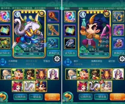 接着确定一下中心方法,那就是拼血流荡妖,因为30级不可能凭借战力强推的。拼血流是一种低战力低消耗荡妖的最好方法。讲到拼血流,就要明确拼血流的中心思想,那就是减对面的攻,加自己的血上限,凭借血量优势和攻击优势,十回合后拼血成功。要做到这两点,那就必须有金鹿力,送死减对面攻,七图必须金鹿,紫鹿不可以。另外需要有润泽神通的护法,嫦娥,王母,太上,沙僧,织女等,通过润泽不断加本方护法血上限血量。有了这些就可以组建拼血荡妖队伍了,下面放出无损七图荡妖阵容。