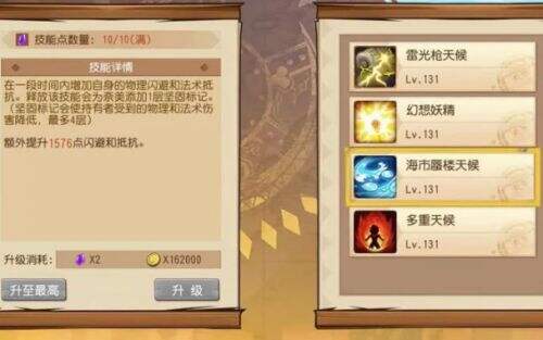 .三技能海市蜃楼天候,娜美在一段时间内增加自身的物理闪避和法术抵抗,该技能会给娜美产生一层坚固效果。这是一个防御性的技能,可以给娜美提供很多的抗性,让她在面对aoe输出和切后排角色的时候更加自如。