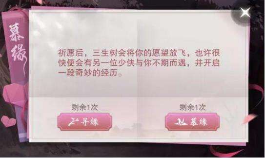 少侠们可以前往金陵-三生树附近进行慕缘操作。