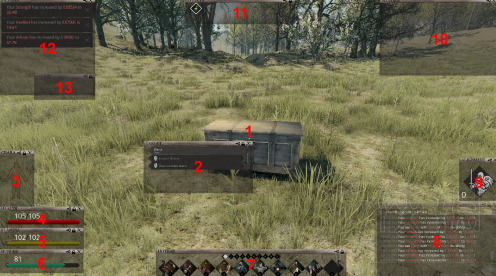 12.消息窗口:所有的技能、属性的增减以及战斗信息都会显示在这里。