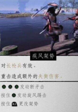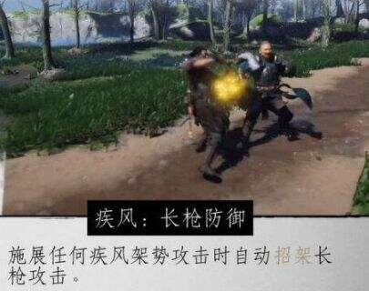 施展任何疾风架势攻击时自动招架长枪攻击。